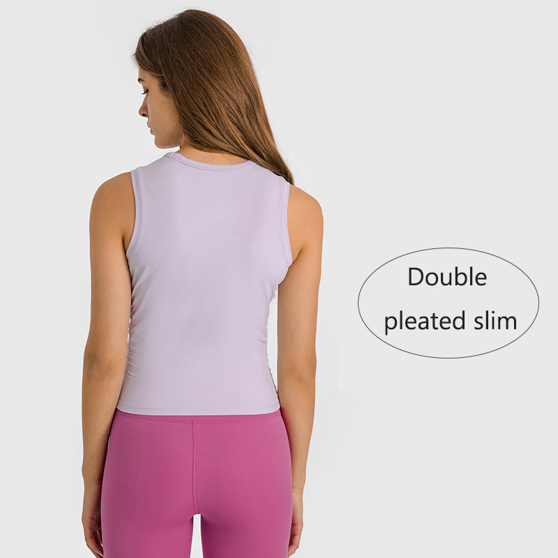 Nowa bez rękawów, wysoka elastyczna koszulka do jogi, plisowana talia, codzienna odzież sportowa do jogi |