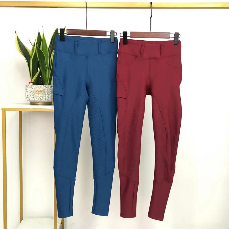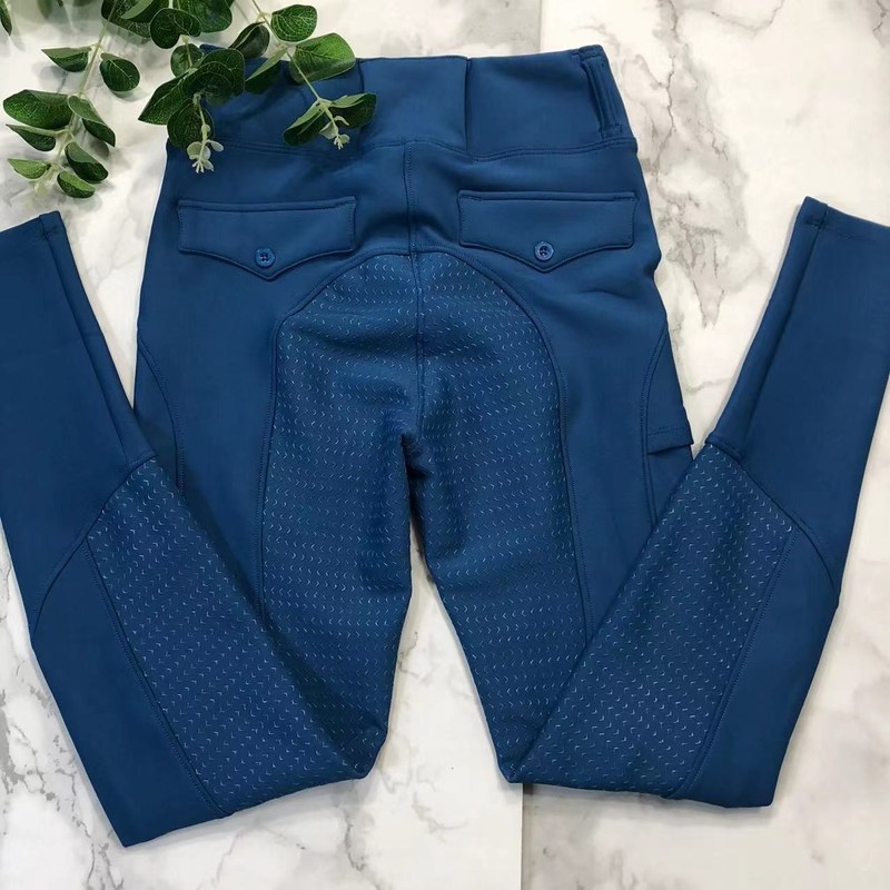 Niebieskie zimowe bryczesy jeździeckie z pełnym lejem silikonowe spodnie do jazdy konnej z kieszenią