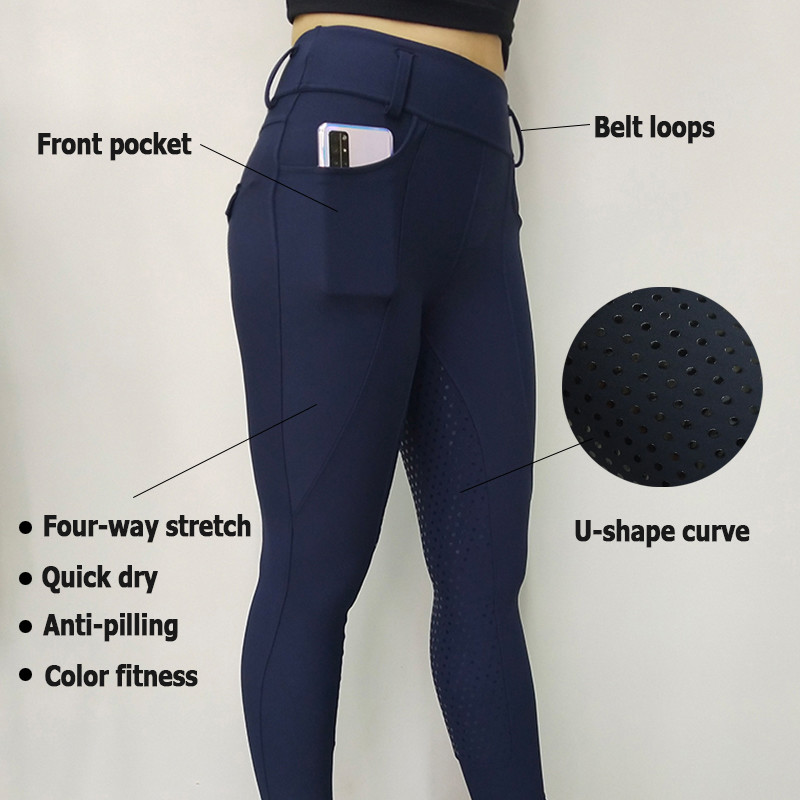 Wysokiej jakości bryczesy jeździeckie z 2 kieszeniami damskie 5 kolorów legginsy do jazdy konnej